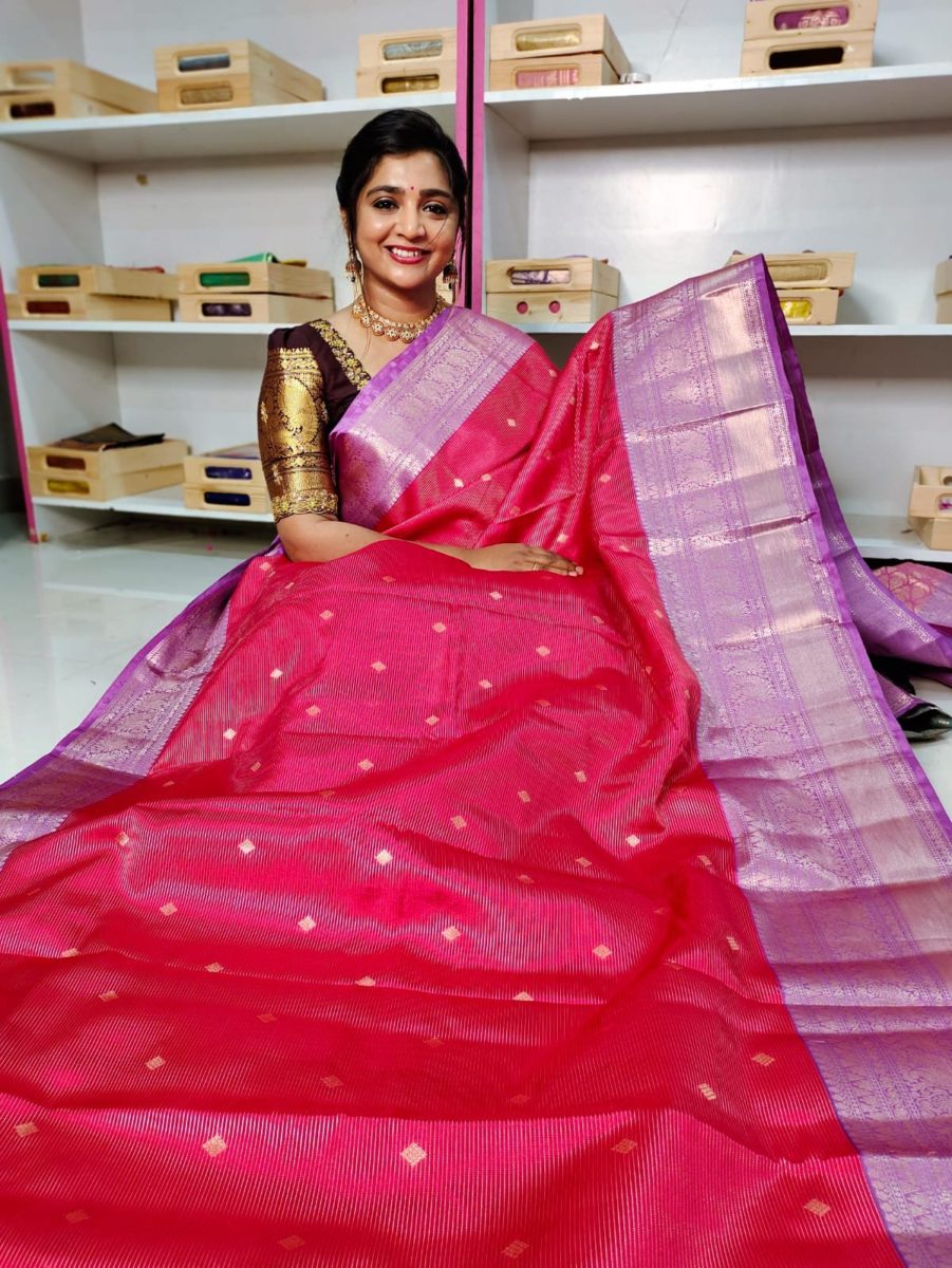 Soft banarasi Silk Saree with kanchi boaders with contrast blouse and pallu design
