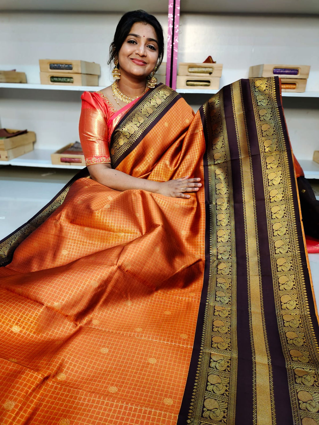Brown paithani
