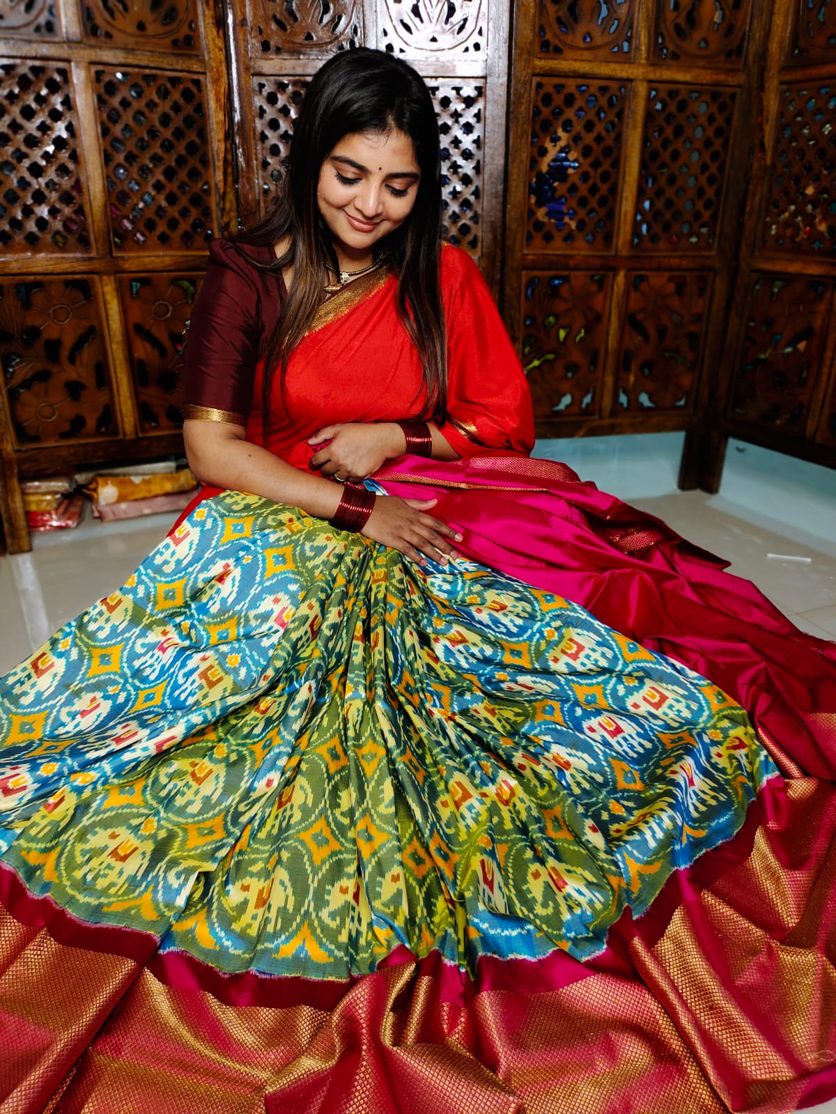 ఇక్కత్ లెహంగా 100% సిల్క్ మార్క్